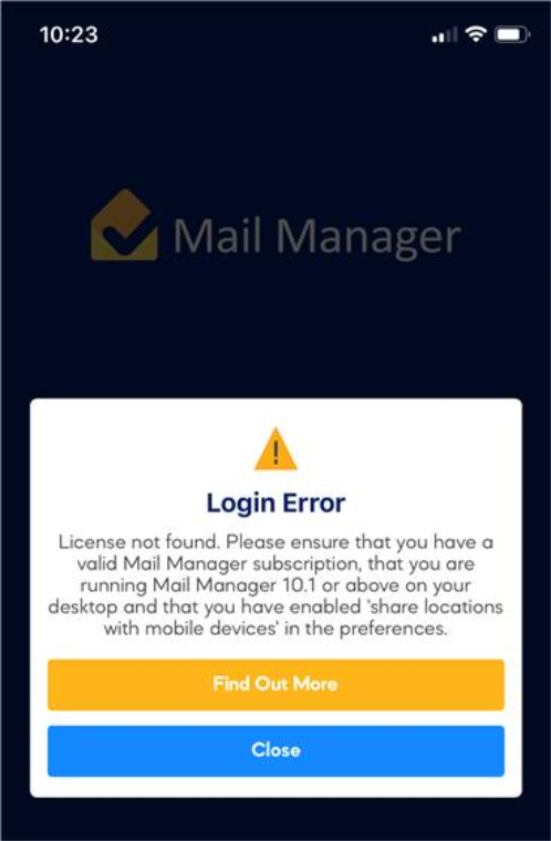 After logging into your Microsoft 365 Account using the Mail Manager mobile app the following login error appears:.