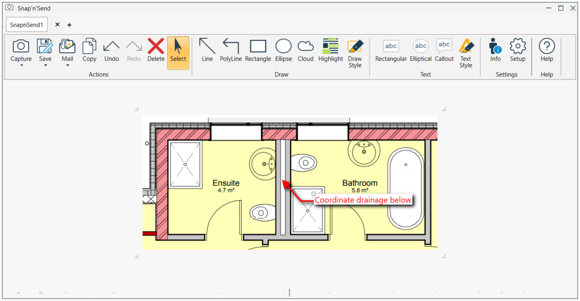 Snap 'n' Send is used to capture any part of the PC screen area and if required mark-ups can be added e.g. highlight, text etc.